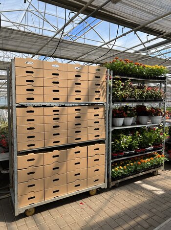 Для надсилання саджанців клієнтам ми, в першу чергу, пакуємо касету з саджанцями у відповідний картонний ящик. Потім, в залежності від типу відправки, пакуємо картонні ящики в дерев’яне обрешетування по 4-5 картонних ящиків або палетуємо на дерев’яний піддон при великих кількостях касет з розсадою для клієнта (відправка службою доставки «Нова пошта», також можливе додаткове пакування, що надає ця служба); пакуємо картонні ящики на візок (доставка нашим транспортом).